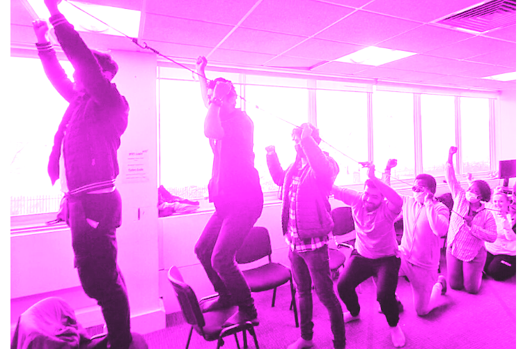 The programme involves 6 months intense exploratory reading and discussion, working through three (of twenty) curated reading lists concurrently in well-facilitated, self-managed groups; 2 months collectively producing a play in conjunction with public educational workshops.